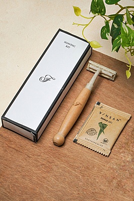 SHAVING KIT ECO-FRIENDLY GEL AND WOODEN RAZOR IN BOX