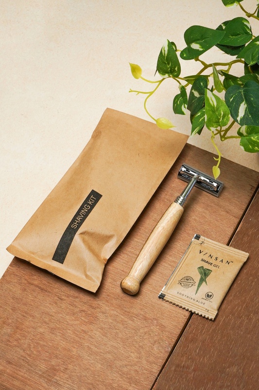 SHAVING KIT ECO-FRIENDLY GEL AND WOODEN RAZOR IN POUCH